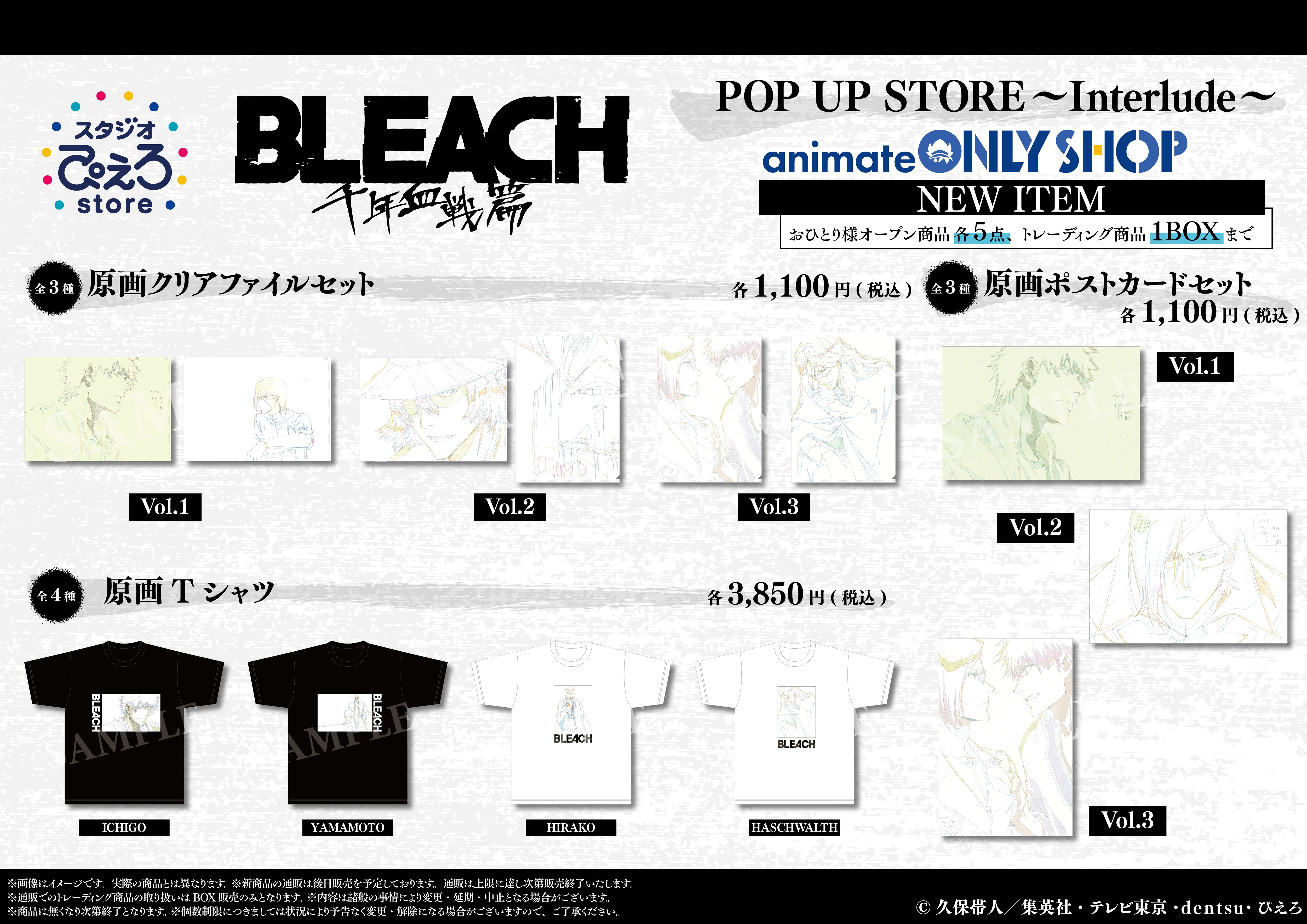 TVアニメ『BLEACH 千年血戦篇』より、作中に登場した「KEY WORD」や原画を使用した、アニメスタジオならではのグッズを展開するPOP UP STORE~Interlude~の詳細情報を公開!