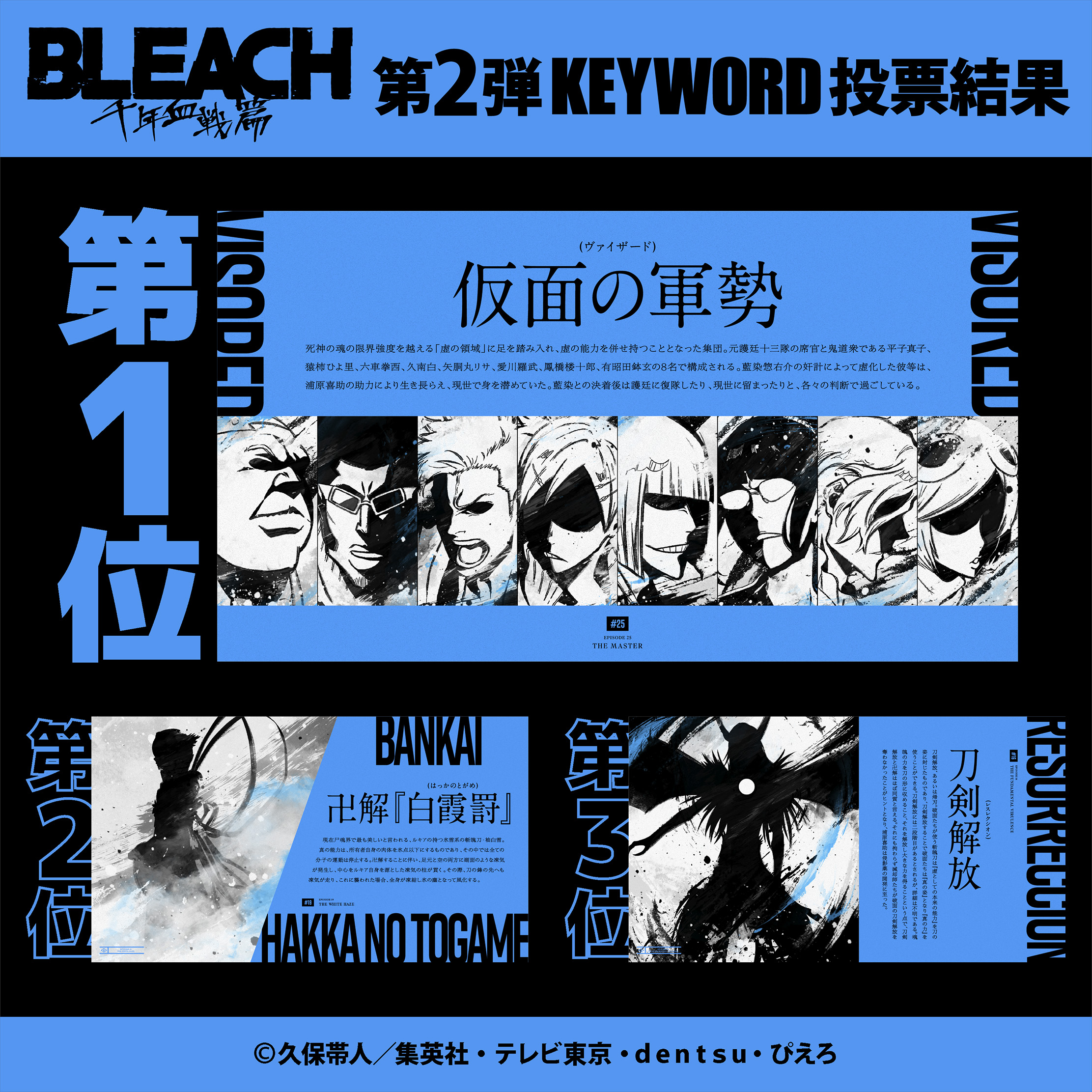 TVアニメ「BLEACH 千年血戦篇」に登場した「KEY WORD」77 枚の中から、