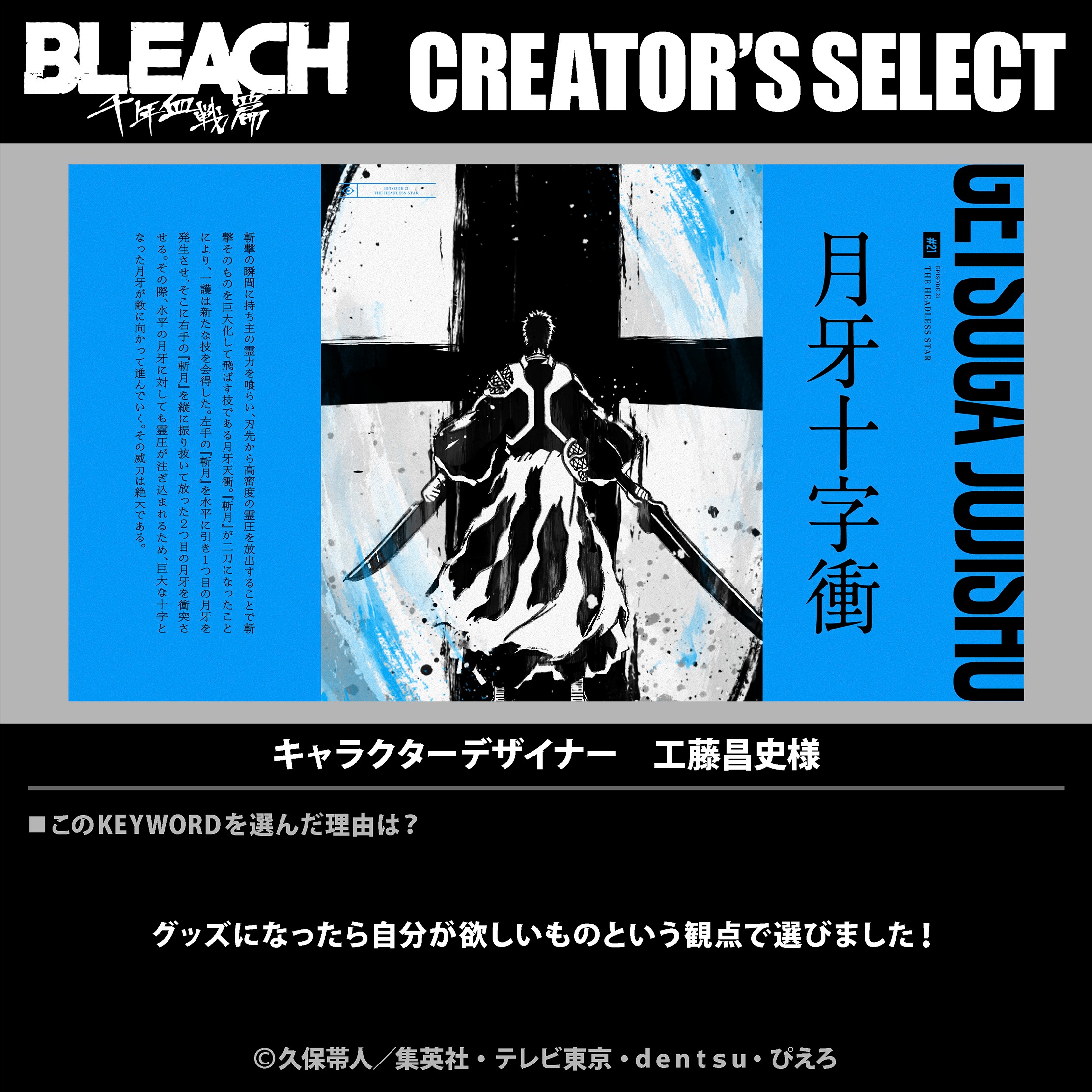 TVアニメ『BLEACH 千年血戦篇』を支える3名のクリエイターが選んだKEY WORDをロングTシャツにして発売いたします。